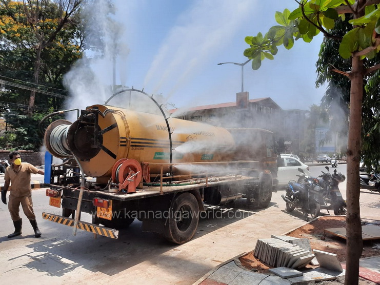 ಮಂಗಳೂರು, ಮಾರ್ಚ್.24: ಕೊರೋನ ವೈರಸ್ ಸೋಂಕು ಹರಡುತ್ತಿರುವ ಹಿನ್ನೆಲೆಯಲ್ಲಿ ಮಂಗಳೂರು ಮಹಾನಗರಪಾಲಿಕೆ ವತಿಯಿಂದ ಸಾಂಕ್ರಾಮಿಕ ರೋಗಗಳ ವೈರಾಣು ನಾಶಕ್ಕೆ ಕ್ರಿಮಿನಾಶಕ ಸಿಂಪಡಣೆ ಕಾರ್ಯಕ್ರಮ ಆರಂಭಿಸಲಾಗಿದೆ.