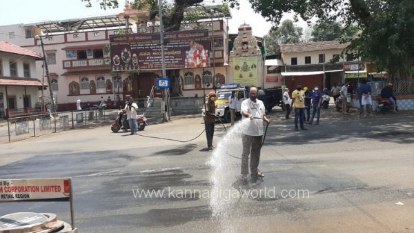 ಮಂಗಳೂರಿನ ವೆಂಕಟರಮಣ ದೇವಸ್ಥಾನದ ಆವರಣದಲ್ಲಿ ಕೊರೋನಾ ಸೋಂಕು ಹರಡದಂತೆ ಔಷಧ ಸಿಂಪಡಣೆ