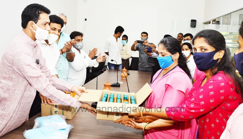 ದಕ್ಷಿಣ ಕನ್ನಡ ಜಿಲ್ಲಾಧಿಕಾರಿ ಕಚೇರಿ ಆವರಣದಲ್ಲಿರುವ ಸಂಸದರ ಕಚೇರಿಯಲ್ಲಿ ವಿಶ್ವ ರೆಡ್ಕ್ರಾಸ್ ದಿನಾಚರಣೆ ಅಂಗವಾಗಿ ಮೇ 8ರಂದು ಶುಕ್ರವಾರ ಆಯೋಜಿಸಲಾದ ಆಶಾ ಕಾರ್ಯಕರ್ತರು ಹಾಗೂ ದಾದಿಯರಿಗೆ ಮಾಸ್ಕ್, ಸ್ಯಾನಿಟೈಸರ್, ಸಾಬೂನುಗಳನ್ನು ಸಂಸದ ನಳಿನ್ ಕುಮಾರ್ ಕಟೀಲ್ ವಿತರಿಸಿದರು.