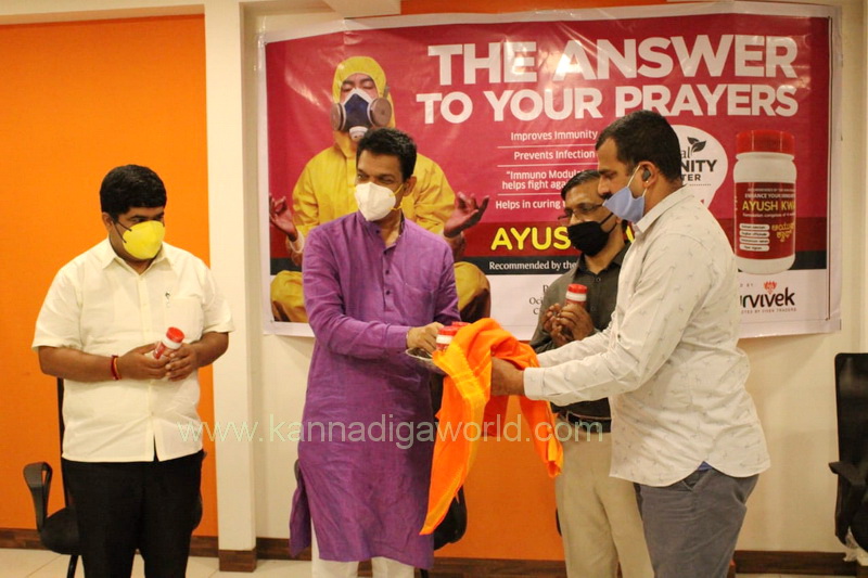 ಮಂಗಳೂರು, ಮೇ.24: ಕೇಂದ್ರ ಸರಕಾರದ ಆಯುಷ್ ಇಲಾಖೆಯಿಂದ ಪ್ರಮಾಣೀಕೃತ ಕೊರೊನಾ ವಿರುದ್ಧ ರೋಗನಿರೋಧಕ ಶಕ್ತಿ ಹೆಚ್ಚಿಸುವ ಆಯುರ್ವೇದ ಔಷಧಿ ಆಯುಷ್ ಕ್ವಾಥ್ ಶನಿವಾರ ಮಂಗಳೂರಿನಲ್ಲಿ ಜನರ ಬಳಕೆಗೆ ಬಿಡುಗಡೆಗೊಳಿಸಲಾಗಿದೆ.