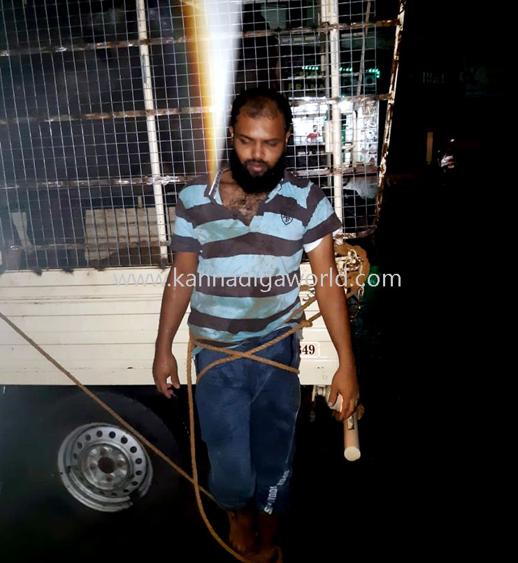 ಮಂಗಳೂರು : ಮಿನಿ ಟೆಂಪೋದರಲ್ಲಿ ಅಕ್ರಮವಾಗಿ ಎಮ್ಮೆ ಸಾಗಾಟ ಮಾಡುತ್ತಿದ್ದ ಪ್ರಕರಣದ ಆರೋಪಿಯನ್ನು ಉರ್ವಾಸ್ಟೋರ್ ಸಮೀಪದ ಕೊಟ್ಟಾರ ಬಳಿ ಸಂಘಪರಿವಾರದ ಕಾರ್ಯಕರ್ತರು ಹಿಡಿದು ಪೊಲೀಸರಿಗೆ ಒಪ್ಪಿಸಿದ ಪ್ರಕರಣದ ಆರೋಪಿ ರೌಡಿ ಶೀಟರ್ ಆಗಿದ್ದು, ಆತನ ವಿರುದ್ಧ ವಿವಿಧ ಠಾಣೆಗಳಲ್ಲಿ ಪ್ರಕರಣ ದಾಖಾಲಿಸಲಾಗಿದೆ ಎಂದು ಪೊಲೀಸರು ತಿಳಿಸಿದ್ದಾರೆ.
