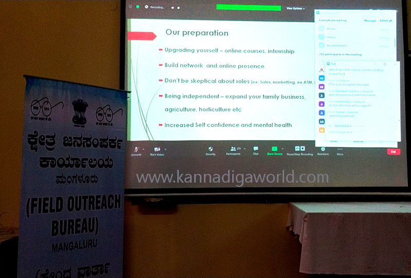 ಮಂಗಳೂರು ಜುಲೈ. 10 : ಕ್ಷೇತ್ರ ಜನಸಂಪರ್ಕ ಕಾರ್ಯಾಲಯ, ವಾರ್ತಾ ಮತ್ತು ಪ್ರಸಾರ ಸಚಿವಾಲಯ, ಭಾರತ ಸರ್ಕಾರ, ಮಂಗಳೂರು ಮತ್ತು ಬೆಸೆಂಟ್ ಮಹಿಳಾ ಕಾಲೇಜಿನ ಇಂಗ್ಲೀಷ್ ವಿಭಾಗ ಇವರ ಸಹಯೋಗದಲ್ಲಿ ಕೋವಿಡ್-19 ನಂತರದ ಉದ್ಯೋಗ ಮಾರುಕಟ್ಟೆ ಸ್ಥಿತಿ ಮತ್ತು ಉದ್ಯೋಗಾಕ್ಷಿಗಳು ಅದಕ್ಕೆ ನಡೆಸಬೇಕಾದ ಸಿದ್ದತೆ ವಿಶೇಷ ವೆಬಿನಾರ್ ಕಾರ್ಯಕ್ರಮ ಗುರುವಾರ ಮಂಗಳೂರಿನ ಬೆಸೆಂಟ್ ಮಹಿಳಾ ಕಾಲೇಜಿನಲ್ಲಿ ನಡೆಯಿತು.