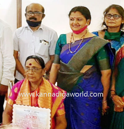 ಮಂಗಳೂರು : ಸಂಗೀತ ವಿದುಷಿ ಶ್ರೀಮತಿ ರತ್ನಾವತಿ ಸಂಜೀವ ಆಚಾರ್ ಕೋಡಿಕಲ್ ಅವರಿಗೆ ಸಂಸ್ಕಾರ ಭಾರತಿ ಕಲಾಪುರಸ್ಕಾರ ನೀಡಿ ಗೌರವಿಸಿದೆ.