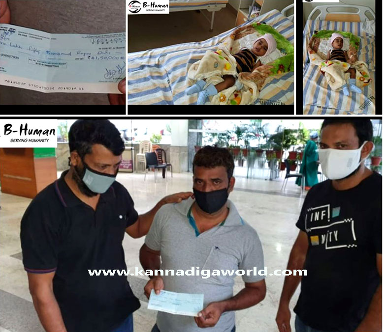 ಬಹಳ ತ್ರಾಸದ ಸಮಯ, ಸಂಕಟ ಮತ್ತು ಅಸಾಹಯಕವಾಗಿದ್ದ ಸಂದರ್ಭದಲ್ಲಿ ನೆರವು ತಲುಪಿಸಿ ಆ ಮಗುವಿನ ಸಂಸಾರಕ್ಕೆ ನೆರವಾದ ಎಲ್ಲರ ಸಂಸಾರದಲ್ಲೂ ಸುಖ – ಸಂತೃಪ್ತಿ- ನೆಮ್ಮದಿ ಇರಲಿ, ನಿಮಗೆ ಇನ್ನಷ್ಟೂ ದಾನ ನೀಡಲು ಅಲ್ಲಾಹನು ಅನುಗ್ರಹ ಕೊಡಲಿ. ನಾವು ಒಂದು ಸಣ್ಣ ನೆರವನ್ನು ತಲುಪಿಸಿದೆವು. ಅದರ ಪ್ರತಿಫಲ ಎಷ್ಟು ಮಧುರವಾಯಿತು. ಪರಸ್ಪರ ಮಾನವೀಯ ಸಂಬಂಧವನ್ನು ಜೀವಂತ ಇರಿಸುವುದೇ ಟೀಂ ಬಿ ಹ್ಯೂಮನ್ ತಂಡದ ಉದ್ದೇಶ ಎಂದು ತಂಡದ ಮುಖ್ಯಸ್ಥರು ತಿಳಿಸಿದ್ದಾರೆ.