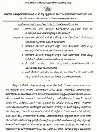 ಅಯೋಧ್ಯೆಯಲ್ಲಿ ಭೂಮಿ ಪೂಜೆ ಹಿನ್ನಲೆ : ಮಂಗಳೂರಿನಲ್ಲಿ ನಿಷೇಧಾಜ್ಞೆ ಜ್ಯಾರಿ