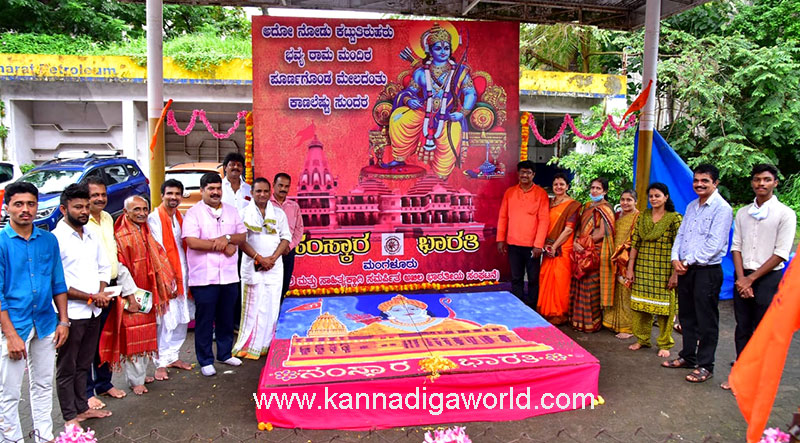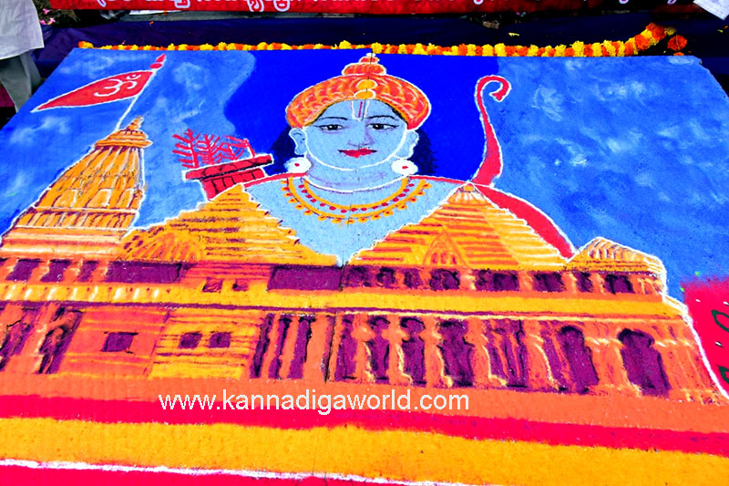 ಹಂಪನಕಟ್ಟ ಪಿ.ಎಂ. ರಸ್ತೆಯ ಪೋಸ್ಟ್ ಆಫೀಸ್ ಹತಿರ ಇರುವ ಹಳೆಯ ಪೆಟ್ರೋಲ್ ಪಂಪ್ ಬಳಿ ಇರುವ ಜಾಗದಲ್ಲಿ ಸಂಸ್ಕಾರ ಭಾರತಿ ಮಂಗಳೂರು ಆಶ್ರಯದಲ್ಲಿ ಸದಸ್ಯರಾದ ದಯಾ ಆರ್ಟ್ಸ್ ನ ದಯಾನಂದ, ರೂಪ, ರೇಣುಕಾ, ಶ್ರೀಲತಾ ಮತ್ತು ಹರ್ಷಿತ ಭವ್ಯ ರಾಮ ಮಂದಿರವನ್ನು ಭೂ ಅಲಂಕರಣದಲ್ಲಿ ರಂಗೋಲಿ ರಚಿಸಿದರು.