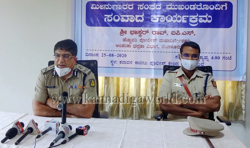 ಉಡುಪಿ: ರಾಜ್ಯದ ಆಂತರಿಕ ಭದ್ರತೆಗೆ, ಆಧುನಿಕ ತಂತ್ರಜ್ಞಾನವನ್ನು ಬಳಸಿಕೊಳ್ಳುವ ಮೂಲಕ ಹೆಚ್ಚಿನ ಭದ್ರತೆ ಒದಗಿಸಲಾಗುವುದು ಎಂದು ರಾಜ್ಯದ ಆಂತರಿಕ ಭದ್ರತಾ ವಿಭಾಗದ ಎಡಿಜಿಪಿ ಭಾಸ್ಕರ್ ರಾವ್ ತಿಳಿಸಿದ್ದಾರೆ. ಅವರು ಮಂಗಳವಾರ, ಮಲ್ಪೆ ಯ ಕರಾವಳಿ ಕವಲು ಪಡೆಯ ಕಚೇರಿಯಲ್ಲಿ ಮೀನುಗಾರ ಮುಖಂಡರೊಂದಿಗೆ ನಡೆದ ಸಂವಾದದಲ್ಲಿ ಮಾತನಾಡಿದರು.