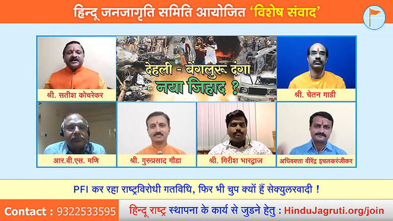 ಅವರು ಹಿಂದೂ ಜನಜಾಗೃತಿ ಸಮಿತಿಯು ಆಯೋಜಿಸಿದ್ದ ‘ದೆಹಲಿ-ಬೆಂಗಳೂರು ಗಲಭೆ : ಹೊಸ ಜಿಹಾದ್ ?’ ಈ ವಿಶೇಷ ಚರ್ಚಾಕೂಟದಲ್ಲಿ ಮಾತನಾಡುತ್ತಿದ್ದರು.