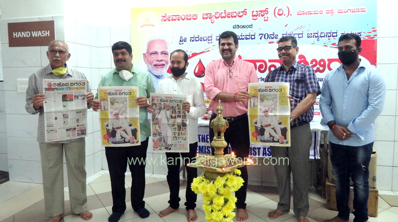 ಪ್ರಧಾನ ಮಂತ್ರಿ ಶ್ರೀ ನರೇಂದ್ರ ಮೋದಿಜಿಯವರು ತಮ್ಮ ಬದುಕಿನ 70 ನೇ ವಸಂತಕ್ಕೆ ಕಾಲಿರಿಸಲಿದ್ದು, ಅದನ್ನು ಅರ್ಥಪೂರ್ಣವಾಗಿ ಆಚರಿಸಲು ಮಂಗಳೂರಿನ ಸಮಾಜಮುಖಿ ಸೇವಾಸಂಸ್ಥೆ ಸೇವಾಂಜಲಿ ಚಾರಿಟೇಬಲ್ ಟ್ರಸ್ಟ್ ವತಿಯಿಂದ ಗುರುವಾರ ನಗರದ ಕೊಡಿಯಾಲ್ ಬೈಲ್‌ನ ಟಿ.ವಿ.ರಮಣ ಪೈ ಸಭಾಂಗಣದ ಆವರಣದಲ್ಲಿ ಹಮ್ಮಿಕೊಳ್ಳಲಾದ ರಕ್ತದಾನ ಶಿಬಿರದಲ್ಲಿ ಮುಖ್ಯ ಅತಿಥಿಗಳಾಗಿ ಭಾಗವಹಿಸಿ ಅವರು ಮಾತನಾಡಿದರು.