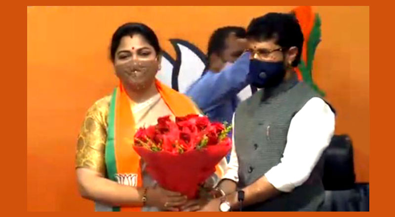 ತಮಿಳುನಾಡು ವಿಧಾನಸಭಾ ಚುನಾವಣೆ ಹೊಸ್ತಿಲಲ್ಲಿ ಇರುವಂತೆಯೇ ನಟಿ ಖುಷ್ಬೂ ಸುಂದರ್ ಕಾಂಗ್ರೆಸ್ ಪಕ್ಷಕ್ಕೆ ಗುಡ್ ಬೈ ಹೇಳಿ ಬಿಜೆಪಿ ಪಕ್ಷಕ್ಕೆ ಸೇರ್ಪಡೆಯಾಗಿದ್ದಾರೆ.