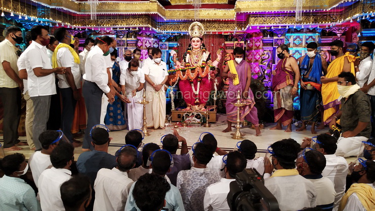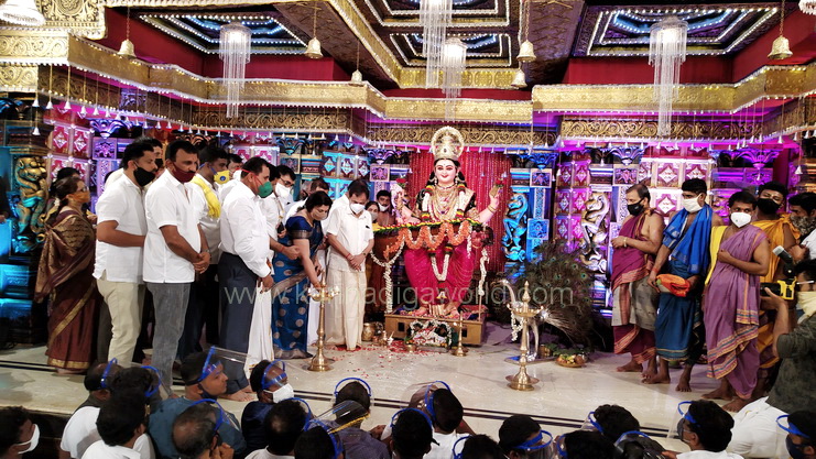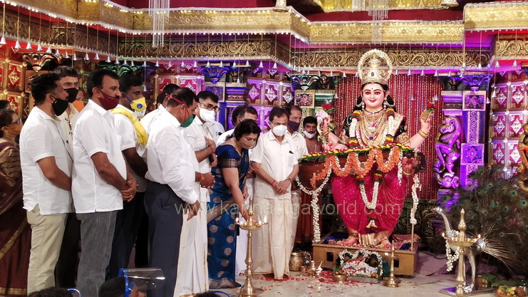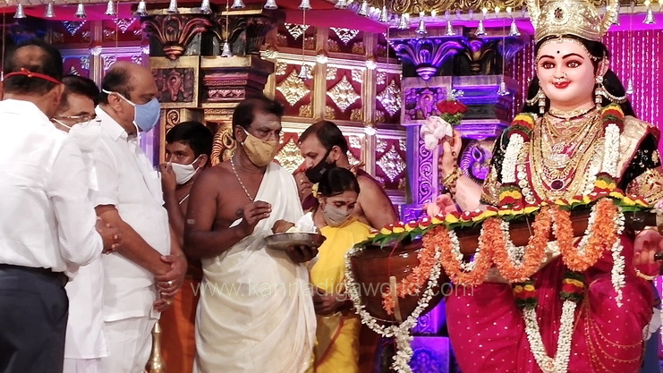 ಮಂಗಳೂರು, ಅಕ್ಟೋಬರ್ 17: ‘ನಮ್ಮ ದಸರಾ-ನಮ್ಮ ಸುರಕ್ಷೆ’ ಘೋಷವಾಕ್ಯದಡಿ ಕುದ್ರೋಳಿ ಶ್ರೀ ಗೋಕರ್ಣನಾಥ ಕ್ಷೇತ್ರದಲ್ಲಿ ಹಮ್ಮಿಕೊಳ್ಳಲಾಗಿರುವ “ಮಂಗಳೂರು ದಸರಾ ಮಹೋತ್ಸವ” ಕ್ಕೆ ಶನಿವಾರ ಕೋವಿಡ್ ವಾರಿಯರ್, ಎನ್ಆರ್ಐ ಫೋರಂ ಮಾಜಿ ಉಪಾಧ್ಯಕ್ಷೆ ಡಾ. ಆರತಿ ಕೃಷ್ಣ ಚಾಲನೆ ನೀಡಿದರು.