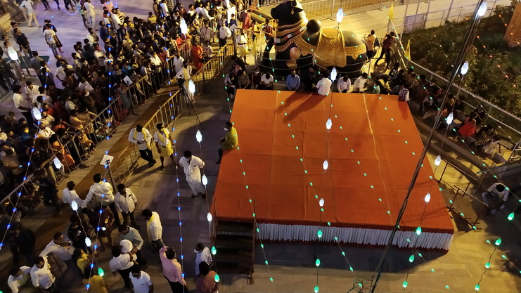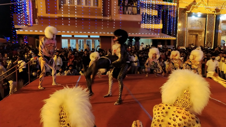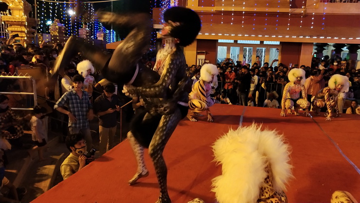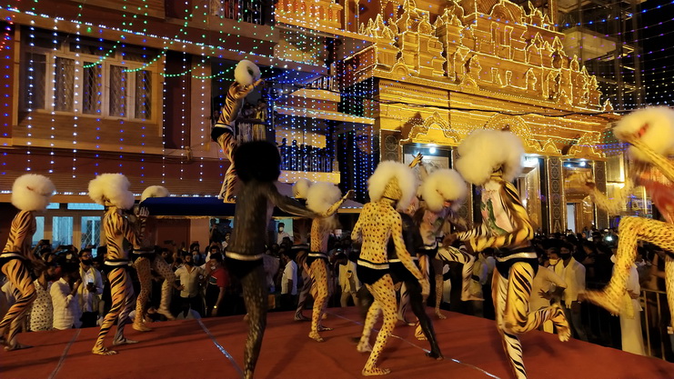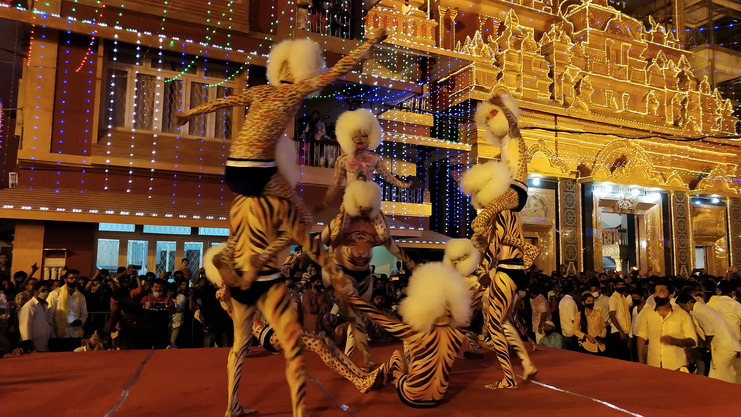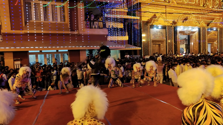 ರಾತ್ರಿ ಪೂರ್ತಿ ಅದ್ದೂರಿ ಟ್ಯಾಬ್ಲೋ ಮೂಲಕ ನಗರ ಪ್ರದಕ್ಷಿಣೆ ಮಾಡಿ ಮುಂಜಾನೆ ವೇಳೆಗೆ ದೇವಳದ ಕೆರೆಯಲ್ಲಿ ವಿಸರ್ಜನೆ ಮಾಡಲಾಗುತಿತ್ತು. ಆದ್ರೆ ಈ ಬಾರಿ ಕೊರೊನಾ ಕಾರಣದಿಂದ ಮೆರವಣಿಗೆಯನ್ನು ರದ್ದುಗೊಳಿಸಲಾಗಿತ್ತು. ದೇವಸ್ಥಾನದಲ್ಲೇ ವಿಸರ್ಜನಾ ಪೂಜೆ ನೆರವೇರಿಸಿ ಹೊರಾಂಗಣದಲ್ಲೇ ಪ್ರದಕ್ಷಿಣೆ ಹಾಕಿ ಕ್ಷೇತ್ರದ ಪುಷ್ಕರಣಿಯಲ್ಲಿ ವಿಸರ್ಜಿಸಲಾಯಿತು.