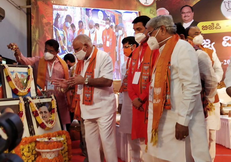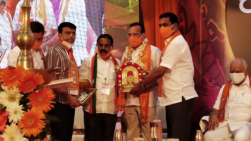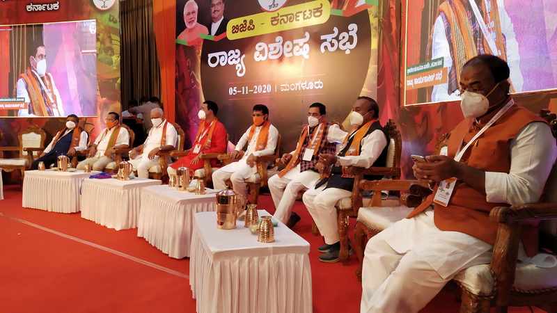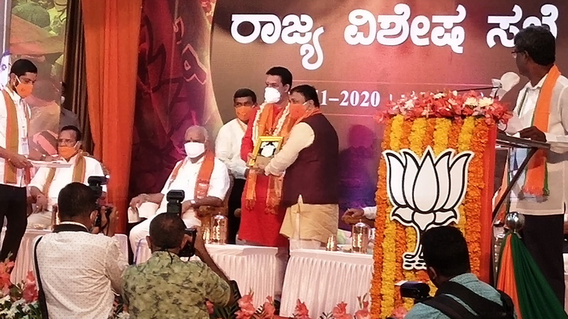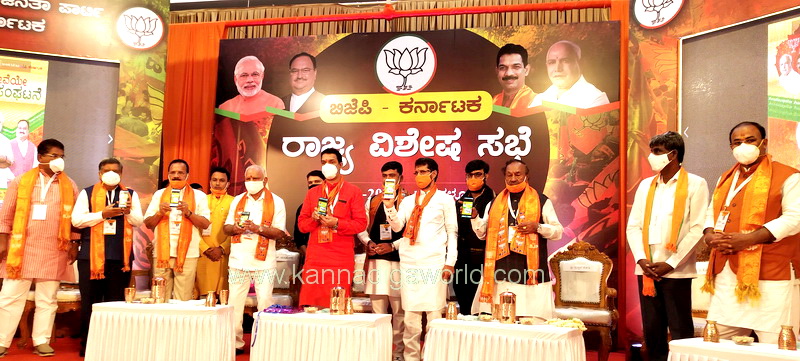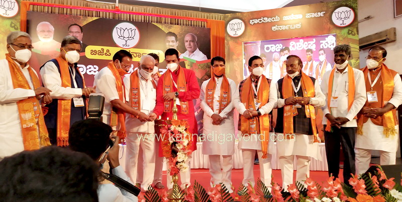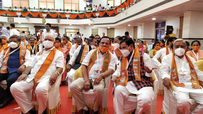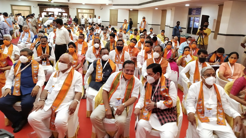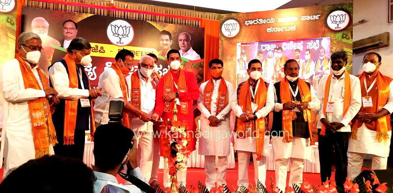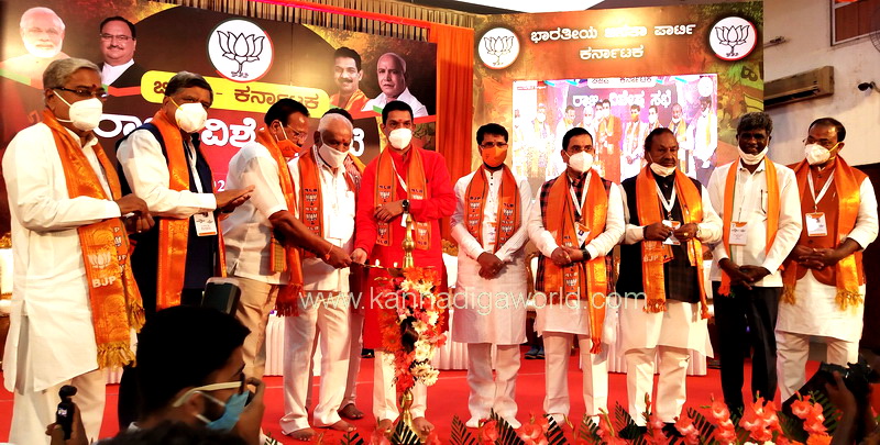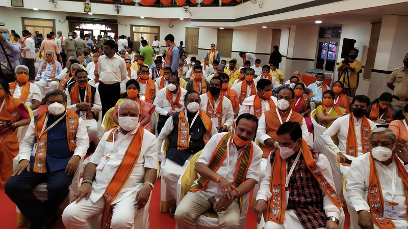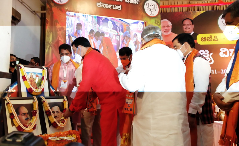 ಬಿಜೆಪಿ ರಾಜ್ಯಾಧ್ಯಕ್ಷ ನಳಿನ್ ಕುಮಾರ್ ಕಟೀಲ್ , ಕೇಂದ್ರ ಸಚಿವ ಪ್ರಹ್ಲಾದ್ ಜೋಷಿ, ಡಿ.ವಿ. ಸದಾನಂದ ಗೌಡ, ಉಪ ಮುಖ್ಯಮಂತ್ರಿ ಗೋವಿಂದ ಕಾರಜೋಳ, ರಾಷ್ಟ್ರೀಯ ಪ್ರಧಾನ ಕಾರ್ಯದರ್ಶಿ ಸಿ.ಟಿ.ರವಿ, ಸಚಿವರಾದ ಜಗದೀಶ ಶೆಟ್ಟರ್, ಆರ್.ಅಶೋಕ, ಕೆ.ಎಸ್.ಈಶ್ವರಪ್ಪ, ರಾಜ್ಯ ಉಪಾಧ್ಯಕ್ಷ ಅರವಿಂದ ಲಿಂಬಾವಳಿ ಮುಂತಾದವರು ವೇದಿಕೆಯಲ್ಲಿ ಉಪಸ್ಥಿತರಿದ್ದರು.