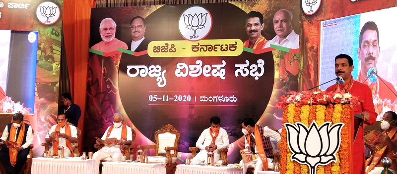 “ಮಂಗಳೂರಿನಲ್ಲಿ 20 ವರ್ಷಗಳ ನಂತರ ರಾಜ್ಯಕಾರ್ಯಕಾರಿಣಿ ಸಭೆಯಾಗುತ್ತಿದೆ. ರಾಜ್ಯಾಧ್ಯಕ್ಷರಾದ ಬಳಿಕ ನಳಿನ್ ಕುಮಾರ್ ಕಟೀಲ್ ಅವರು ಪಕ್ಷ ಬಲಪಡಿಸಿದ್ದಾರೆ. ಎರಡು ವರ್ಷಗಳ ಬಳಿಕ ಬಿಜೆಪಿ ಸಂಪೂರ್ಣ ಬಹುಮತದೊಂದಿಗೆ ಮತ್ತೆ ಅಧಿಕಾರಕ್ಕೆ ಬರುತ್ತದೆ. 2014ರಲ್ಲಿ ಬಿಜೆಪಿ 104 ಸೀಟ್ ಗಳಿಸಿತ್ತು. ದೇಶದ ಇತಿಹಾಸದಲ್ಲಿ ಮೊದಲ ಬಾರಿಗೆ 18 ಮಂದಿ ಆಡಳಿತ ಪಕ್ಷದ ಸದಸ್ಯರು ಬಿಜೆಪಿಗೆ ಸೇರಿದ್ದರು. 18 ಜನರ ಸಹಕಾರದಿಂದ ಅಧಿಕಾರಕ್ಕೆ ಬರಲು ಸಾಧ್ಯವಾಯಿತು.