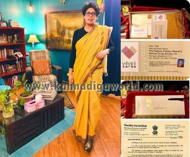 ದೀಪಾವಳಿ ಹಬ್ಬದ ಪ್ರಯುಕ್ತ ಸ್ಥಳೀಯವಾಗಿ ಉಡುಪಿ ಸೀರೆಗಳನ್ನು ಖರೀದಿಸಿರುವ ಶೋಭಾ ಅವರು ಬಿಜೆಪಿ ನಾಯಕರಿಗೆ ಉಡುಗೊರೆಯಾಗಿ ಕೊಟ್ಟು ಶುಭಕೋರಿ ಉಡುಪಿ ಕೈಮಗ್ಗವನ್ನು ರಾಷ್ಟ್ರಮಟ್ಟದ ನಾಯಕರಿಗೂ ಮತ್ತೊಮ್ಮೆ ಪರಿಚಯಿಸುವ ಪ್ರಯತ್ನ ಮಾಡಿದ್ದಾರೆ. ಶೋಭಾ ಅವರು ನೀಡಿರುವ ಉಡುಗೊರೆ ಕುರಿತು ಟ್ವೀಟ್ ಮಾಡಿಸುವ ಶೆಫಾಲಿ ವೈದ್ಯ ಅವರು ಸಂತಸ ವ್ಯಕ್ತಪಡಿಸಿದ್ದಾರೆ. ಅಲ್ಲದೇ ರಾಜ್ಯ ಹಾಗೂ ಕೇಂದ್ರ ಬಿಜೆಪಿ ನಾಯಕರು ಈ ಕಾರ್ಯಕ್ಕೆ ಮೆಚ್ಚುಗೆ ವ್ಯಕ್ತಪಡಿಸಿದ್ದಾರೆ.