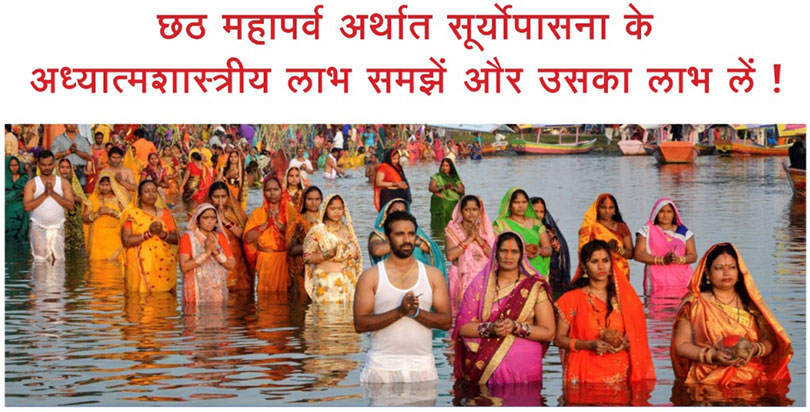 ‘ಛಠ್ ಉತ್ಸವ’ ಅಂದರೆ ಸೂರ್ಯೋಪಾಸನೆ. ಸೂರ್ಯೋಪಾಸನೆಯಿಂದಾಗಿ ವ್ಯಕ್ತಿಯಲ್ಲಿರುವ ಸೂಕ್ಷ್ಮ ನಕಾರಾತ್ಮಕ ಶಕ್ತಿ ಕಡಿಮೆ ಅಥವಾ ನಾಶವಾಗಿ ಸಕಾರಾತ್ಮಕ ಶಕ್ತಿ ಉತ್ಪನ್ನವಾಗುತ್ತದೆ ಅಥವಾ ಹೆಚ್ಚಾಗುತ್ತದೆ, ಎಂಬುದು ‘ಯೂನಿವರ್ಸಲ್ ಔರಾ ಸ್ಕ್ಯಾನರ್’(ಯು.ಎ.ಎಸ್.) ಈ ವೈಜ್ಞಾನಿಕ ಉಪಕರಣ ಹಾಗೂ ಸೂಕ್ಷ್ಮ-ಪರೀಕ್ಷಣೆಯಿಂದ ಮಾಡಿದ ಸೂರ್ಯೋಪಾಸನೆಯ ವಿವಿಧ ಪ್ರಯೋಗಗಳಿಂದ ಸ್ಪಷ್ಟವಾಯಿತು.