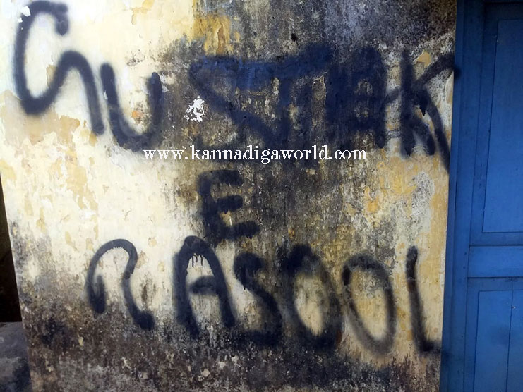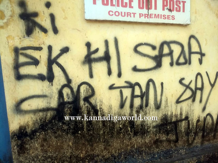 ನಗರದ ಕೋರ್ಟ್ ರೋಡ್‌ನಲ್ಲಿ ಕೋರ್ಟ್‌ಗೆ ಸಮೀಪವಾಗಿರುವ ಕೋರ್ಟ್ ಪ್ರಿಮಿಸಸ್‌ನ ಹಳೇ ಪೊಲೀಸ್ ಔಟ್ ಪೋಸ್ಟ್‌ನ ಗೋಡೆಯ ಮೇಲೆ ಕಿಡಿಗೇಡಿಗಳು ಉರ್ದು ಭಾಷೆಯಲ್ಲಿ ‘Gustuk e Rasool ek hi saza sar tan say juda’ ಅಂದರೆ, “ಪ್ರವಾದಿಗೆ ಕೋಪ ಬಂದರೆ ಒಂದೇ ಶಿಕ್ಷೆ, ಅದು ತಲೆ ದೇಹದಿಂದ ಬೇರ್ಪಡುವುದು” ಎಂಬ ವಿವಾದಾತ್ಮಕ ಬರಹವನ್ನು ಬರೆದಿದ್ದಾರೆ. ಕಪ್ಪು ಬಣ್ಣದ ಪೈಂಟ್ ಬಳಸಿ ರಾತ್ರಿ ವೇಳೆ ಬರೆಯಲಾಗಿದ್ದು, ರವಿವಾರ ಬೆಳಗ್ಗೆ ವಿಷಯ ಬೆಳಕಿಗೆ ಬಂದಿದೆ.