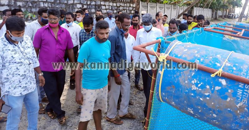 ಭಾನುವಾರ ಪಂಜರ ಮೀನುಗಾರಿಕ ಕೃಷಿಯಲ್ಲಿ ಉಂಟಾದ ಸಮಸ್ಯೆಯನ್ನು ಅವಲೋಕಿಸಲು ಮೀನುಗಾರಿಕ ಇಲಾಖಾ ವಿಜ್ಞಾನಿಗಳ ತಂಡದೊಂದಿಗೆ ಭೇಟಿ ನೀಡಿದರು.