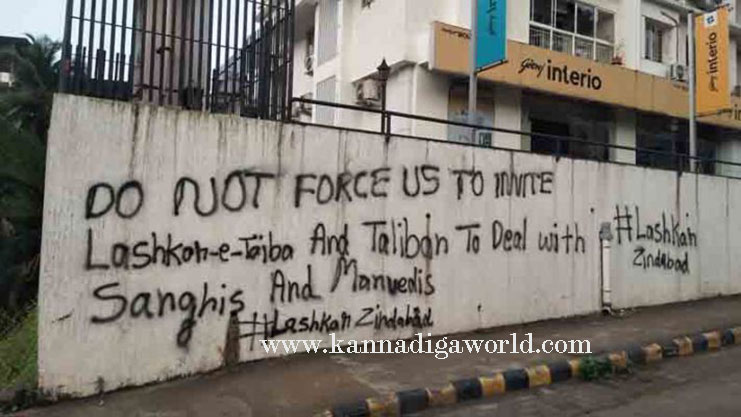 ಪ್ರಚೋದನಕಾರಿ ಗೋಡೆಬರಹ ಪ್ರಕರಣಕ್ಕೆ ಸಂಬಂಧಿಸಿದಂತೆ ಈಗಾಗಲೇ ಮೂವರು ಆರೋಪಿಗಳನ್ನು ಬಂಧಿಸಲಾಗಿದೆ. ಇನ್ನೊಬ್ಬ ವ್ಯಕ್ತಿ ಕೂಡ ಶಾಮೀಲಾಗಿರುವುದು ಕಂಡುಬಂದಿದ್ದು, ಆತನಿಗಾಗಿ ಶೋಧ ಕಾರ್ಯಾಚರಣೆ ಮುಂದುವರಿದಿದೆ ಎಂದು ನಗರ ಪೊಲೀಸ್ ಆಯುಕ್ತ ವಿಕಾಶ್ ಕುಮಾರ್ ತಿಳಿಸಿದ್ದಾರೆ.