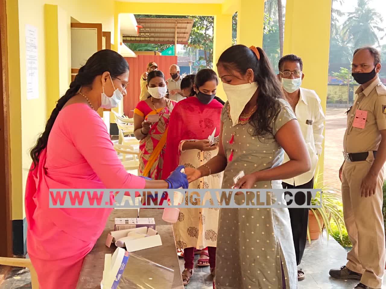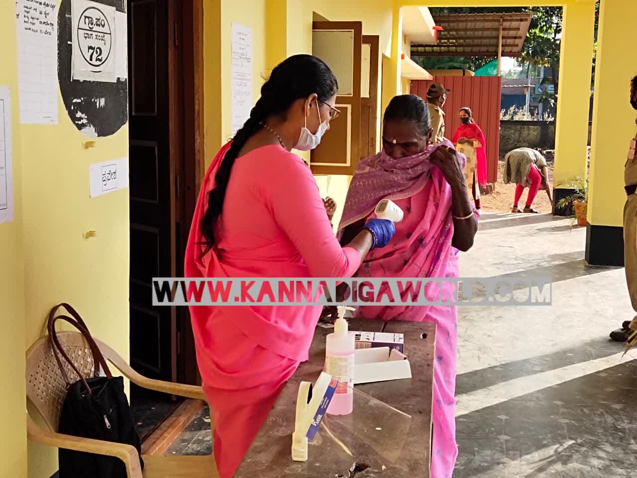 ಪ್ರತೀ ಮತದಾನ ಕೇಂದ್ರಗಳಲ್ಲೂ ಕೋವಿಡ್ ನಿಯಮ ಪಾಲನೆ ಮಾಡಲಾಗಿದ್ದು ಮಾಸ್ಕ್ ಧಾರಣೆ, ಸಾಮಾಜಿಕ ಅಂತರಕ್ಕೆ ಒತ್ತು ನೀಡಲಾಗಿದೆ. ಮತ ಚಲಾವಣೆಗೂ ಮೊದಲೇ ಸ್ಯಾನಿಟೈಜ್, ಥರ್ಮಲ್ ಸ್ಕ್ಯಾನಿಂಗ್ ಕಡ್ಡಾಯವಾಗಿದ್ದು ಮಾಸ್ಕ್ ಧರಿಸದೆ ಬಂದವರನ್ನು ಮತದಾನ ಕರ್ತವ್ಯದಲ್ಲಿರುವ ಸಿಬಂದಿಗಳು ವಾಪಾಸ್ ಕಳುಹಿಸುತ್ತಿರುವ ದೃಶ್ಯ ಕಂಡು ಬಂದಿದೆ.