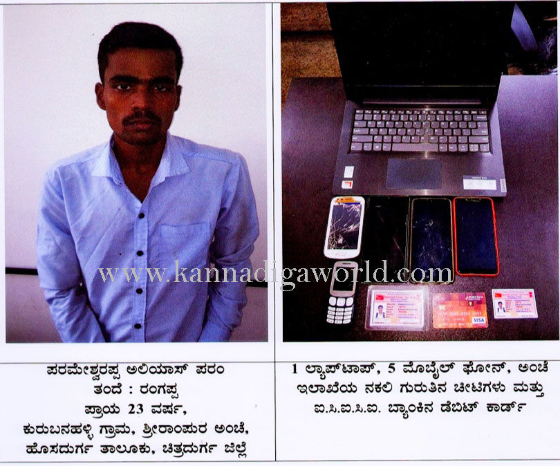 ಬಂಧಿತ ಆರೋಪಿಯನ್ನು ಚಿತ್ರದುರ್ಗದ ಹೊಸದುರ್ಗ ತಾಲೂಕಿನ ಕುರುಬನಹಳ್ಳಿ ನಿವಾಸಿ ಪರಮೇಶ್ವರಪ್ಪ ರಂಗಪ್ಪ (23) ಎಂದು ಹೆಸರಿಸಲಾಗಿದೆ. ಅಂಚೆ ಇಲಾಖೆಯ ಹಿರಿಯ ಅಧಿಕಾರಿ ಹರ್ಷ ಎನ್ ಅವರು ಪರಮೇಶ್ವರಪ್ಪ ವಿರುದ್ಧ ಡಿಸೆಂಬರ್ 2ರಂದು ಸೈಬರ್ ಅಪರಾಧ ಪೊಲೀಸ್ ಠಾಣೆಯಲ್ಲಿ ದೂರು ದಾಖಲಿಸಿದ್ದಾರೆ.