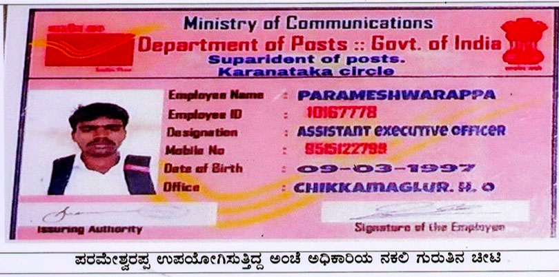 ಡಿಸೆಂಬರ್ 20 ರಂದು ಆರೋಪಿಯು ಮಂಗಳೂರು ನಗರದ ಸಶಸ್ತ್ರ ಮೀಸಲು ಪಡೆಯ ಇಬ್ಬರು ಸಿಬ್ಬಂದಿಗೆ ಅಂಚೆ ಇಲಾಖೆಯಲ್ಲಿನ ಗ್ರೇಡ್ 1 ಮತ್ತು ಗ್ರೇಡ್ 2 ಹುದ್ದೆ ಖಾಲಿ ಇರುವುದಾಗಿ ನಂಬಿಸಿ 6 ಲಕ್ಷ ರೂ. ನಗದು ಪಡೆದು ವಂಚಿಸಿದ್ದ. ಪೊಲೀಸ್ ಸಿಬ್ಬಂದಿಗಳನ್ನು ವಂಚಿಸಲು ಪರಮೇಶ್ವರಪ್ಪ ಅಂಚೆ ಇಲಾಖೆಯ ಹಿರಿಯ ಅಧಿಕಾರಿಯಾಗಿರುವ ಪೂಜಾ ಸಿ ಎನ್ ಎಂಬ ಹೆಸರಿನಲ್ಲಿ ನಕಲಿ ಖಾತೆ ತೆರೆದಿದ್ದನು ಎಂದು ಪೊಲೀಸರು ತಿಳಿಸಿದ್ದಾರೆ.