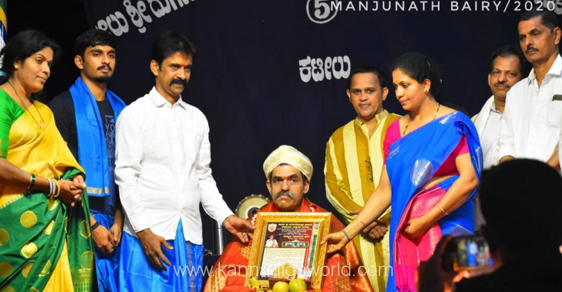 ಮಂಗಳೂರು: ಕಟೀಲು ಮೇಳದ ಪ್ರಧಾನ ಭಾಗವತ ಪದ್ಯಾಣ ಗೋವಿಂದ ಭಟ್ ಅವರಿಗೆ ಕದ್ರಿ ದೇವಸ್ಥಾನ ಬಳಿಯ ಮಂಜುನಾಥ ಕಾಲನಿಯ ಬಯಲಿನಲ್ಲಿ ನಡೆದ ಸಮಾರಂಭದಲ್ಲಿ “ಶ್ರೀ ಕದ್ರಿ” ಪ್ರಶಸ್ತಿ ಪ್ರದಾನ ಮಾಡಲಾಯಿತು.