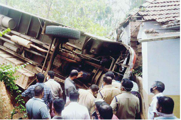 ಮಾರ್ಗ ಮಧ್ಯೆ ಅಂದ್ರೆ ಕೇರಳದ ಕಾಸರಗೋಡು ಜಿಲ್ಲೆಯ ಕಲ್ಲಪಳ್ಳಿ ಬಳಿಯ ಪೆರಿಯಾರಂ ಘಾಟ್ ರಸ್ತೆಯ ಇಳಿಜಾರಿನಲ್ಲಿ ಚಾಲಕನ ನಿಯಂತ್ರಣ ತಪ್ಪಿದ ಬಸ್ ಮನೆ ಮೇಲೆ ಉರುಳಿದೆ. .ಘಟನೆಯಲ್ಲಿ ಏಳು ಮಂದಿ ಮೃತಪಟ್ಟಿದ್ದು, ಹಲವರಿಗೆ ಗಂಭೀರ ಗಾಯಗಳಾಗಿದೆ. 35 ಮಂದಿಯನ್ನು ಕಾಞಂಗಾಡ್ ಆಸ್ಪತ್ರೆಗೆ, 11 ಮಂದಿಯನ್ನು ಮಂಗಳೂರು ಆಸ್ಪತ್ರೆಗೂ ದಾಖಲಿಸಲಾಗಿದ್ದು, ಈ ಪೈಕಿ ಹತ್ತಕ್ಕೂ ಅಧಿಕ ಮಂದಿಯ ಸ್ಥಿತಿ ಗಂಭೀರವಾಗಿತ್ತು.