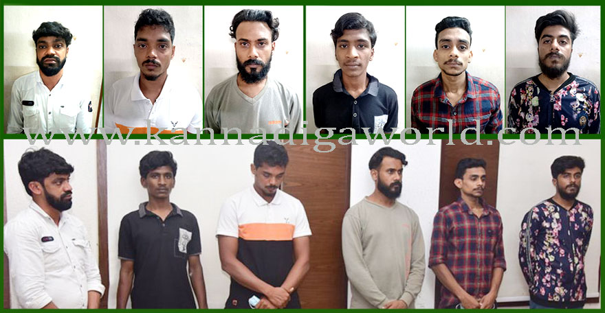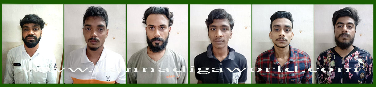 ಬಂಟ್ವಾಳ ನಿವಾಸಿ ಮಹಮ್ಮದ್ ನವಾಝ್ (30), ಕುದ್ರೋಳಿ ನಿವಾಸಿ ಅನೀಶ್ ಅಶ್ರಫ್ (22), ಕುದ್ರೋಳಿ ನಿವಾಸಿ ಅಬ್ದುಲ್ ಖಾದರ್ ಫಹಾದ್ (23), ಬಜಪೆ ನಿವಾಸಿ ಶೇಖ್ ಮಹಮ್ಮದ್ ಹ್ಯಾರಿಸ್ ಯಾನಿ ಜಿಗ್ರಿ (31), ಕುದ್ರೋಳಿ ನಿವಾಸಿ ರಾಹಿಲ್ ಯಾನೆ ಚೋಟು ರಾಹಿಲ್ (18), ತಣ್ಣೀರು ಬಾವಿ ನಿವಾಸಿ ಮಹಮ್ಮದ್ ಕೈಝ್ (24) ಬಂಧಿತರು.