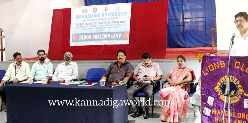 ಮಂಗಳೂರು ವಿಶ್ವವಿದ್ಯಾನಿಲಯದ ಎನ್.ಎಸ್.ಎಸ್. ವಿಭಾಗ, ವಿಶ್ವವಿದ್ಯಾನಿಲಯ ಕಾಲೇಜಿನ ಎನ್ಸಿಸಿ ವಿಭಾಗಗಳು ಹಾಗೂ ಲಯನ್ಸ್ ಕ್ಲಬ್ ಹೈಲ್ಯಾಂಡ್ ಸಹಯೋಗದೊಂದಿಗೆ ಮಂಗಳವಾರ ರವೀಂದ್ರ ಕಲಾಭವನದಲ್ಲಿ ವಿದ್ಯಾರ್ಥಿಗಳು ಮತ್ತು ಪ್ರಾಧ್ಯಾಪಕರಿಗಾಗಿ ಆಯೋಜಿಸಿದ್ದ ರಕ್ತದಾನ ಶಿಬಿರ ಉದ್ಘಾಟಿಸಿ ಮಾತನಾಡಿದ ಅವರು, ಒಬ್ಬರ ರಕ್ತ ನಾಲ್ವರ ಜೀವ ಉಳಿಸಬಹುದು. ಅದರಲ್ಲೂ ನಿಯಮಿತ ರಕ್ತಪೂರಣದ ಅಗತ್ಯವಿರುವ ತಲಸ್ಸೇಮಿಯಾ (Thalassemia) ದಂತಹ ಕಾಯಿಲೆಯಿಂದ ಬಳಲುವ ಮಕ್ಕಳಿಗೆ ರಕ್ತದ ತೀವ್ರ ಅಗತ್ಯತೆಯಿರುತ್ತದೆ, ಎಂದರು.