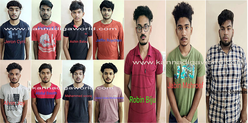ಬಂಧಿತರನ್ನು ಮೊಹಮ್ಮದ್ ಶಮಾಸ್, ಅವಿನ್ ಜೋಯ್, ರಾಬಿನ್ ಬಿಜು, ಜೆರಾನ್ ಸಿರಿಲ್, ಜಬಿನ್ ಮಹರೂಫ್, ಮೊಹಮ್ಮದ್ ಸೂರಜ್, ಜಫಿನ್, ಅಬ್ದುಲ್ ಬಸಿತ್, ಆಶಿನ್ ಬಾಬು, ಅಬ್ದುಲ್ ಅನಾಸ್ ಮೊಹಮ್ಮದ್, ಅಕ್ಷಯ್ ಕೆ.ಎಸ್ ಎಂದು ಗುರುತಿಸಲಾಗಿದ್ದು, ಇವರೆಲ್ಲರೂ ಕೇರಳ ಮೂಲದವರಾಗಿದ್ದಾರೆ.