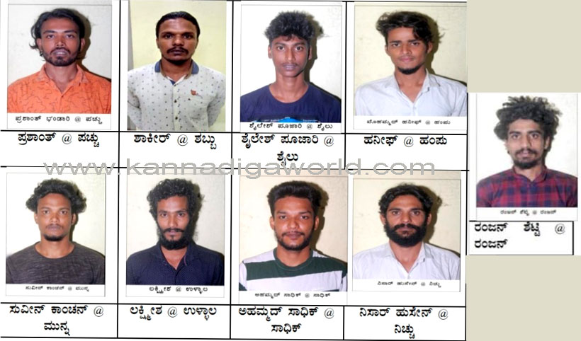 ಕಾಟಿಪಳ್ಳದ ಶಕೀಬ್ (29), ಕಾಟಿಪಳ್ಳದ ಹನೀಫ್ (20), ಕಾಟಿಪಳ್ಳದ ಅಹ್ಮದ್ ಸಾದಿಕ್ (23), ಕಾಟಿಪಳ್ಳದ ನಿಸ್ಸಾರ್ ಹುಸೇನ್ (29) ಕಾಟಿಪಳ್ಳದ ಪ್ರಶಾಂತ್ ಭಂಡಾರಿ (29), ಕೃಷ್ಣಾಪುರದ ಶೈಲೇಶ್ ಪೂಜಾರಿ (19), ಹೆಜಮಾಡಿಯ ಸುವೀನ್ ಕಾಂಚನ್ (23), ಕಾಟಿಪಳ್ಳದ ಲಕ್ಷ್ಮಿಶ (26) ಮತ್ತು ಕಾಟಿಪಳ್ಳದ ರಂಜನ್ ಶೆಟ್ಟಿ (24) ಬಂಧಿತ ಆರೋಪಿಗಳು.