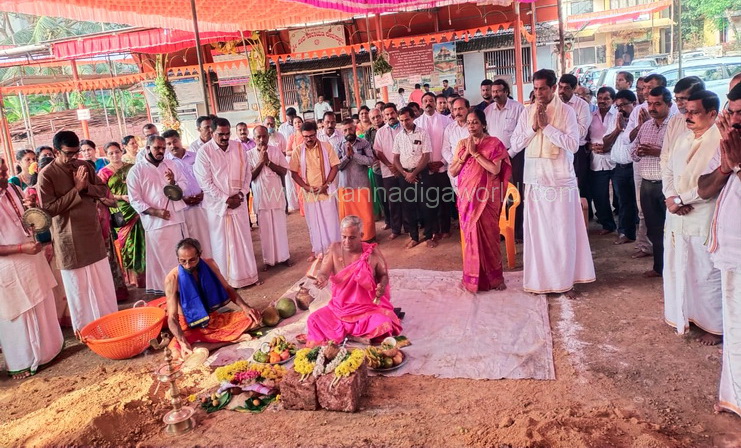 ಮಂಗಳೂರು : ದ. ಕ. ಜಿಲ್ಲಾ ಮೂಲ್ಯರ ಯಾನೇ ಕುಲಾಲರ ಮಾತೃ ಸಂಘದ ಆಡಳಿತಕೊಳಪಟ್ಟ ಕುಲಶೇಖರ ಶ್ರೀವೀರನಾರಾಯಣ ದೇವಸ್ಥಾನ, ಇದರ ಜೀರ್ಣೋದ್ದಾರ ಕೆಲಸ ಕಾರ್ಯಗಳು ಅತ್ಯಂತ ಸುಲಲಿತವಾಗಿ ನಡೆಯುತ್ತಿದ್ದು, ಫೆಬ್ರವರಿ 17ರಂದು ಬುಧವಾರ ಬೆಳಗ್ಗೆ ಘಂಟೆ 8-44 ಕ್ಕೆ ಒದಗುವ ಮೀನ ಲಗ್ನದಲ್ಲಿ ಬಾಲಾಲಯ ನಿರ್ಮಾಣದ ಸಲುವಾಗಿ *ಭೂಮಿ ಪೂಜೆ* ನಡೆಯಿತು.