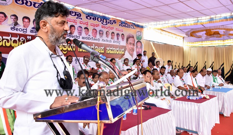 ನಮಗೆ ಅಚ್ಛೇ ದಿನ್ ಬೇಡ, ಸಚ್ಛೇ ದಿನ್ ಕೊಡಿ. ಸತ್ಯದ ದಿನಗಳನ್ನು ಕೊಡಿ. ಕೇವಲ ಸುಳ್ಳು ಹೇಳಿ ಜನರನ್ನು ಯಾಮಾರಿಸಬೇಡಿ. ನಾನು ಕನಕಪುರದ ಬಂಡೆ ಅಲ್ಲ, ಆ ಬಂಡೆ ಪ್ರಕೃತಿ, ಅದನ್ನು ಕಡಿದರೆ ಆಕೃತಿ, ಪೂಜಿಸಿದರೆ ಸಂಸ್ಕೃತಿ. ಬಿಜೆಪಿಯವರು ನಾವು ಹಿಂದೂ ಮುಂದೂ ಎನ್ನುತ್ತಾರೆ. ಆದರೆ ನಾವು ಹಾಗಿಲ್ಲ, ಎಲ್ಲಾ ಧರ್ಮಗಳು ಸೇರಿ ಒಂದು. ನಮಗೆ ಮಾನವ ತತ್ವ ಮುಖ್ಯ. ನಮ್ಮ ರಕ್ತ, ಉಸಿರು, ಬೆವರಿನಲ್ಲಿ ಯಾವುದೇ ಬೇಧ ಇಲ್ಲ. ಇವತ್ತು ನಾವು ಅಧಿಕಾರ ಕಳೆದುಕೊಂಡಿರಬಹುದು. ಆದರೆ ನಮಗೆ ವಿಶ್ವಾಸ, ನಂಬಿಕೆ ಇದೆ. ಮತ್ತೆ ವಿಧಾಸಸೌಧದಲ್ಲಿ ಕಾಂಗ್ರೆಸ್ ಬಾವುಟ ಈ ರಾಜ್ಯದ ಜನ ಹಾರಿಸಲಿದ್ದಾರೆ ಎಂದು ಡಿಕೆ ವಿಶ್ವಾಸ ವ್ಯಕ್ತಪಡಿಸಿದರು.