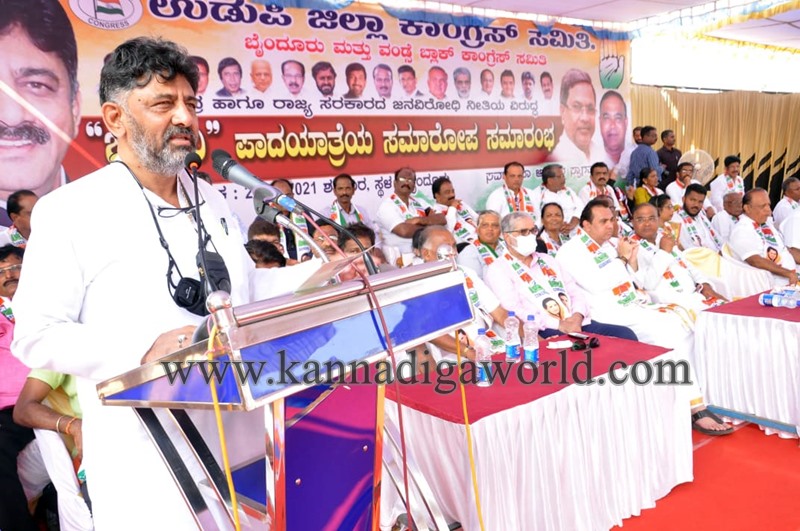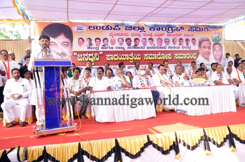ಅವರು ಶನಿವಾರ ಮಧ್ಯಾಹ್ನ ಉಡುಪಿ ಜಿಲ್ಲಾ ಕಾಂಗ್ರೆಸ್ ನೇತೃತ್ವದಲ್ಲಿ ಕೇಂದ್ರ ಹಾಗೂ ರಾಜ್ಯ ಸರ್ಕಾರಗಳ ಜನವಿರೋಧಿ ನೀತಿಗಳ ವಿರುದ್ದ ಆರು ದಿನಗಳ ಕಾಲ ಹೆಜಮಾಡಿಯಿಂದ ಬೈಂದೂರಿನ ತನಕ ನಡೆದ ಜನಧ್ವನಿ ಪಾದಯಾತ್ರೆಯ ಸಮಾರೋಪ ಸಮಾರಂಭದಲ್ಲಿ ಮಾತನಾಡಿದರು.