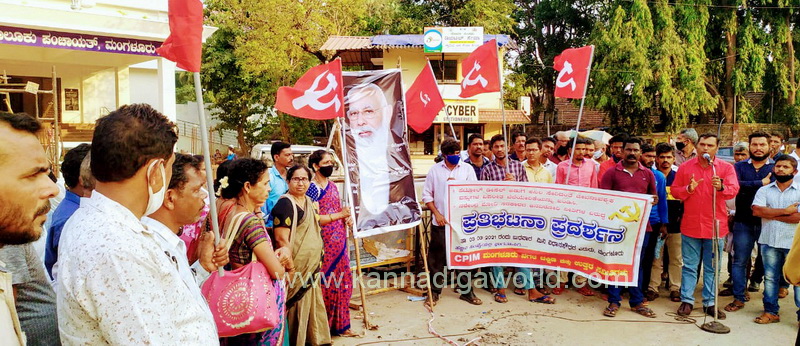ಪ್ರತಿಭಟನೆಯನ್ನುದ್ದೇಶಿಸಿ ಸಿಪಿಐಎಂ ದ.ಕ.ಜಿಲ್ಲಾ ಕಾರ್ಯದರ್ಶಿ ಮಂಡಳಿ ಸದಸ್ಯರಾದ ಜೆ.ಬಾಲಕ್ರಷ್ಣ ಶೆಟ್ಟಿಯವರು ಮಾತನಾಡುತ್ತಾ, ದೇಶವನ್ನು ಧೀರ್ಘಕಾಲ ಆಳಿದ ಕಾಂಗ್ರೆಸ್ ಸರಕಾರದ ತಪ್ಪು ಆರ್ಥಿಕ ನೀತಿಗಳ ವಿರುದ್ದ ಭುಗಿಲೆದ್ದ ಜನತೆಯ ಆಕ್ರೋಶವನ್ನು ಬಂಡವಾಳವನ್ನಾಗಿಸಿದ ಬಿಜೆಪಿ ಅಧಿಕಾರಕ್ಕೇರಿದ ಬಳಿಕ ಅದೇ ನೀತಿಗಳನ್ನು ಜಾರಿಗೊಳಿಸಿ ದೇಶದ ಆರ್ಥಿಕತೆಯನ್ನೇ ನಾಶಪಡಿಸುತ್ತಿದೆ.ಜನತೆಯ ಬದುಕನ್ನು ಸರ್ವ ನಾಶ ಮಾಡುತ್ತಿದೆ* ಎಂದು ಆಕ್ರೋಶ ವ್ಯಕ್ತಪಡಿಸಿದರು.