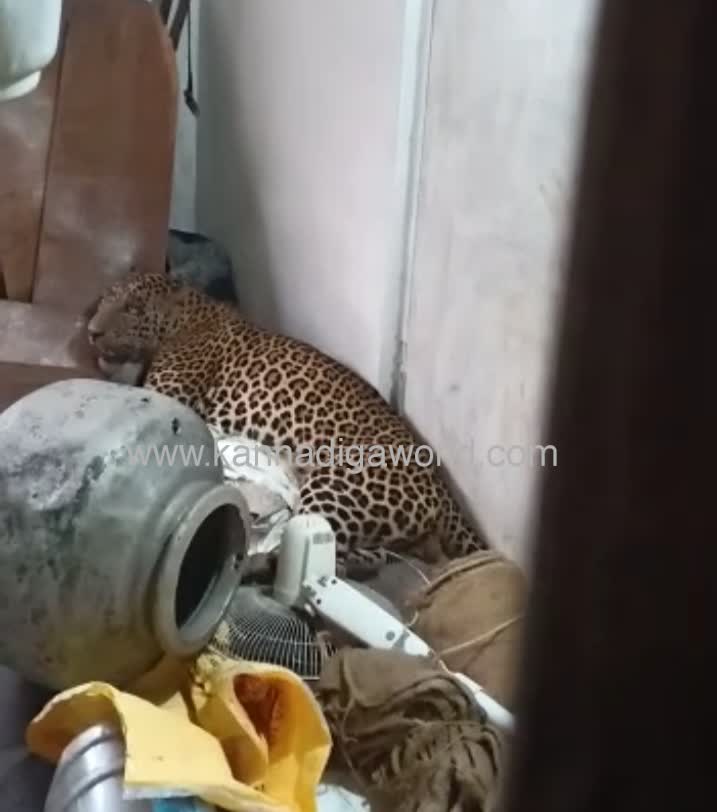 ಭಾನುವಾರ ಮುಂಜಾನೆ ಚಿರತೆಯೊಂದು ನಾಯಿಯನ್ನು ಹಿಡಿಯಲು ಮುಂದಾಗಿದೆ. ಈ ವೇಳೆಯಲ್ಲಿ ನಾಯಿ ಮನೆಯ ಕೋಣೆಯೊಳಗೆ ನುಗ್ಗಿದೆ. ಕೂಡಲೇ ಚಿರತೆ ಕೂಡ ಕೋಣೆಯೊಳಗೆ ಹಿಂಬಾಲಿಸಿ ಹೋಗಿದೆ. ಮನೆಯವರಿಗೆ ವಿಚಾರ ತಿಳಿಯುತ್ತಿದ್ದಂತೆಯೆ ಕೋಣೆಯ ಬಾಗಿಲು ಬಂದ್ ಮಾಡಿ ಅರಣ್ಯ ಇಲಾಖೆಯ ಅಧಿಕಾರಿಗಳಿಗೆ ಸುದ್ದಿ ಮುಟ್ಟಿಸಿದ್ದಾರೆ.