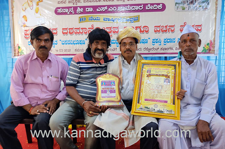 ಸಮಾರಂಭದಲ್ಲಿ ವಿವಿಧ ನೆಲೆಯಲ್ಲಿ ಸಾಧನೆಗೈದ ವಿಜಯಪುರದ ಡಾ ಕೃಷ್ಣ ಕೋಲ್ಹಾರ ಕುಲಕರ್ಣಿ (ಸಂಶೋಧನೆ) ಬೆಂಗಳೂರಿನ ಡಾ ಆಡುಗೋಡಿ ಶ್ರೀನಿವಾಸ (ಚಲನ ಚಿತ್ರ) ವಿಜಯಪೂರದ ಗುರು ಗಚ್ಚಿನ ಮಠ (ಸಮಾಜ) ಧರ್ಮಸ್ಥಳದ ಶಶಿಧರ ಆಚಾರ್ಯ (ಶಿಲ್ಪಕಲೆ) ಶಂಕರಗೌಡ ಬಿರಾದಾರ (ವೈಧ್ಯಕೀಯ) ಇವರಿಗೆಲ್ಲರಿಗೂ ‘ಬಸವ ವಿಭೂಷಣ’ ರಾಷ್ಟ್ರೀಯ ಪ್ರಶಸ್ತಿ ನೀಡಿ ಗೌರವಿಸಲಾಯಿತು.