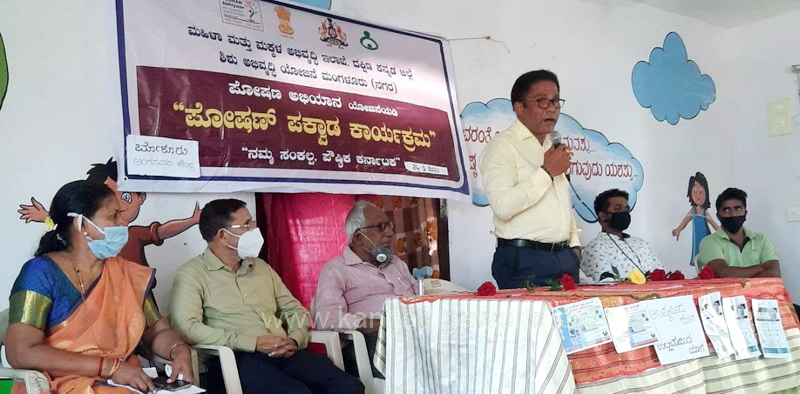 ಮಂಗಳೂರು ನಗರ ಶಿಶು ಅಭಿವೃದ್ಧಿ ಯೋಜನಾಧಿಕಾರಿ ಶ್ರೀ ಹರೀಶ್ ಮಾತನಾಡಿ ಕೊರೊನಾ ಜಾಗೃತಿ ಬಗ್ಗೆ ಮಾಹಿತಿ ನೀಡಿದರು. ಶ್ರೀ ವಾಸುದೇವ ಬೋಳೂರು ಅಧ್ಯಕ್ಷತೆ ವಹಿಸಿದ್ದರು.ವೇದಿಕೆಯಲ್ಲಿ ಪೋಷಣ್ ಅಭಿಯಾನದ ತಾಲೂಕು ಸಂಯೋಜಕ ಶ್ರೀ ಮಿತೇಶ್ ಉಪಸ್ಥಿತರಿದ್ದರು.