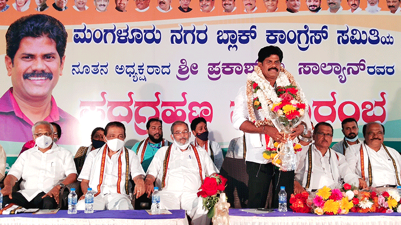 ಮಾಜಿ ಶಾಸಕ ಜೆ.ಆರ್.ಲೋಬೋ ಹಾಗೂ ಕಾಂಗ್ರೆಸ್‌ನ ಹಿರಿಯ ಮುಖಂಡ, ಮೂಡಾದ ಮಾಜಿ ಅಧ್ಯಕ್ಷ ಸುರೇಶ್ ಬಳ್ಳಾಲ್ ಅವರು ಪ್ರಕಾಶ್ ಬಿ. ಸಾಲಿಯಾನ್ ಅವರಿಗೆ ಪಕ್ಷದ ಧ್ವಜ ಹಸ್ತಾಂತರಿಸುವ ಮೂಲಕ ನಗರ ಬ್ಲಾಕ್ ಕಾಂಗ್ರೆಸ್ ಅಧ್ಯಕ್ಷರಾಗಿ ಘೋಷಣೆ ಮಾಡಿದರು.
