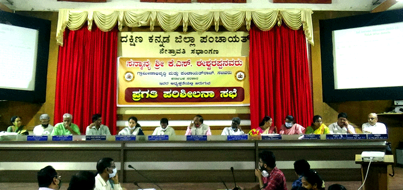 ಮಂಗಳೂರು: ಗ್ರಾಮೀಣಾಭಿವೃದ್ಧಿ ಮತ್ತು ಪಂಚಾಯತ್‍ರಾಜ್ ಸಚಿವರಾದ ಕೆ..ಎಸ್ ಈಶ್ವರಪ್ಪ ಅವರ ಅಧ್ಯಕ್ಷತೆಯಲ್ಲಿ ನಗರದ ಜಿಲ್ಲಾ ಪಂಚಾಯತ್ ನ ನೇತ್ರಾವತಿ ಸಭಾಂಗಣದಲ್ಲಿ ಪ್ರಗತಿ ಪರಿಶೀಲನಾ ಸಭೆಯು ನಡೆಯಿತು.