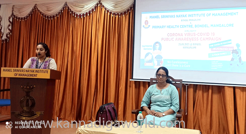 ಮಂಗಳೂರು : ಮಣೇಲ್ ಶ್ರೀನಿವಾಸ್ ನಾಯಕ್ ಇನ್ಸ್ಟಿಟ್ಯೂಟ್ ಆಫ್ ಮ್ಯಾನೇಜ್ಮೆಂಟ್ (ಎಂಎಸ್ಎನ್ಐಎಂ) ಬೊಂದೆಲ್ನ ಸರಕಾರಿ ಪ್ರಾಥಮಿಕ ಆರೋಗ್ಯ ಕೇಂದ್ರದ ಸಹಯೋಗ ದೊಂದಿಗೆ ಮಂಗಳೂರಿನ ಬೊಂದೆಲ್ನಲ್ಲಿರುವ ತನ್ನ ಕ್ಯಾಂಪಸ್ನಲ್ಲಿ ‘ಕೋವಿಡ್-19 ಜಾಗೃತಿ ಅಭಿಯಾನ’ವನ್ನು ಆಯೋಜಿಸಿತು.