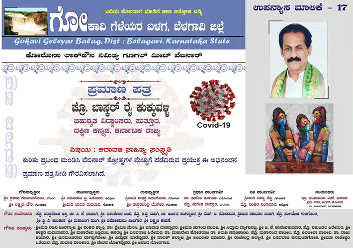 ಕರಾವಳಿ ನಾಡು ಸಾಹಿತ್ಯ-ಸಂಸ್ಕ್ರತಿಯ ನೆಲೆವೀಡು : ಗೋಕಾವಿ ಗೆಳೆಯರ ಬಳಗದ ಗೂಗಲ್ ಮೀಟ್‌‍ನಲ್ಲಿ ಭಾಸ್ಕರ ರೈ ಕುಕ್ಕುವಳ್ಳಿ