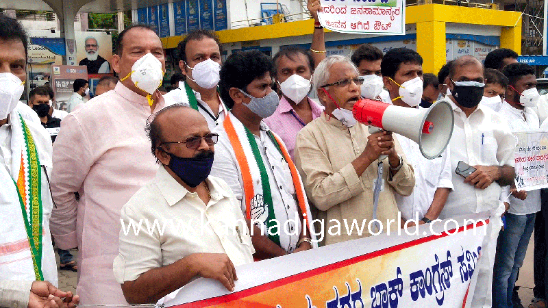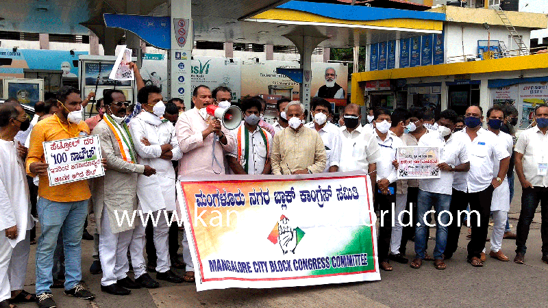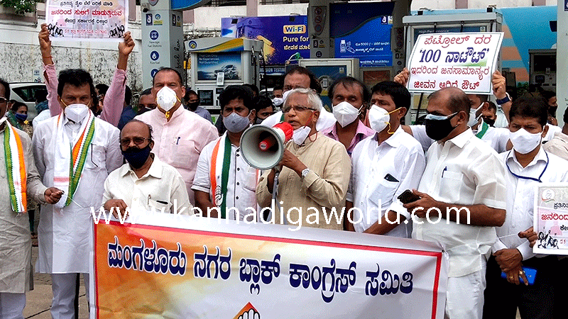 ಮಂಗಳೂರು, ಜೂನ್.12: ದೇಶದಲ್ಲಿ ವ್ಯಾಪಕವಾಗಿ 100ರ ಗಡಿ ಸೇರಿರುವ ಪೆಟ್ರೋಲ್ ಹಾಗೂ ಡೀಸೆಲ್ ದರ ಹೆಚ್ಚಳದ ವಿರುದ್ಧ ಮಂಗಳೂರು ನಗರ ಬ್ಲಾಕ್ ಕಾಂಗ್ರೆಸ್ ಅಧ್ಯಕ್ಷರಾದ ಪ್ರಕಾಶ್ ಬಿ ಸಾಲ್ಯಾನ್ ರವರ ನೇತೃತ್ವದಲ್ಲಿ ಶನಿವಾರ ಬೆಳಿಗ್ಗೆ ಮಂಗಳೂರಿನ ಲೇಡಿಹಿಲ್ ಪೆಟ್ರೋಲ್ ಬಂಕ್ ಮುಂಭಾಗ ಪ್ರತಿಭಟನಾ ಸಭೆ ನಡೆಯಿತು.