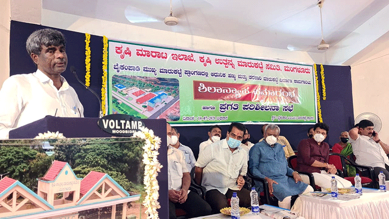ಮಂಗಳೂರು, ಜುಲೈ.15: ಕೃಷಿ ಮಾರುಕಟ್ಟೆ ಹಾಗೂ ಸಹಕಾರ ಸಚಿವರಾದ ಎಸ್.ಟಿ. ಸೋಮಶೇಖರ್ ಅವರು ಬೈಕಂಪಾಡಿಯಲ್ಲಿರುವ ಕೃಷಿ ಉತ್ಪನ್ನ ಮಾರುಕಟ್ಟೆ ಸಮಿತಿಯ ಮುಖ್ಯ ಮಾರುಕಟ್ಟೆ ಪ್ರಾಂಗಣದಲ್ಲಿ ಹಣ್ಣು ಮತ್ತು ತರಕಾರಿ ಮಾರಾಟಕ್ಕೆ ಆಧುನಿಕ ಮಾರುಕಟ್ಟೆ ನಿರ್ಮಾಣಕ್ಕೆ ಬುಧವಾರ ಶಿಲಾನ್ಯಾಸ ನೆರವೇರಿಸಿದರು.