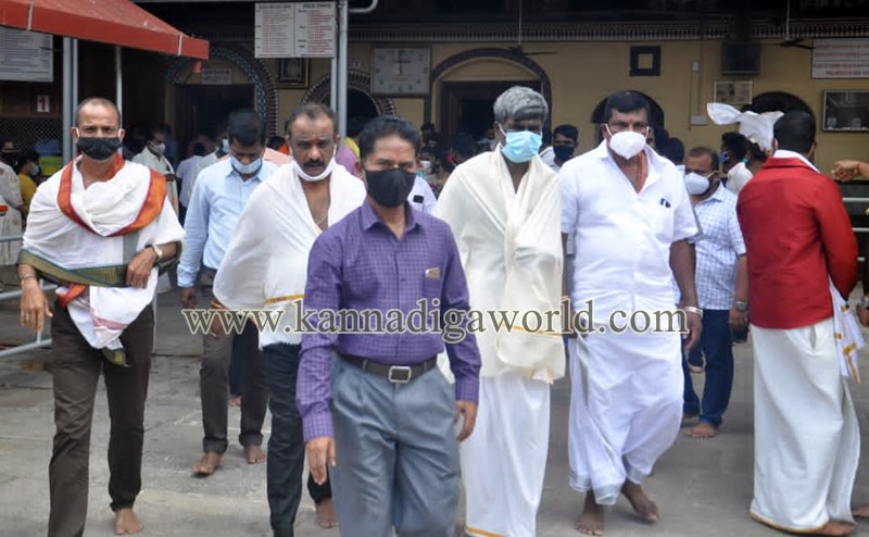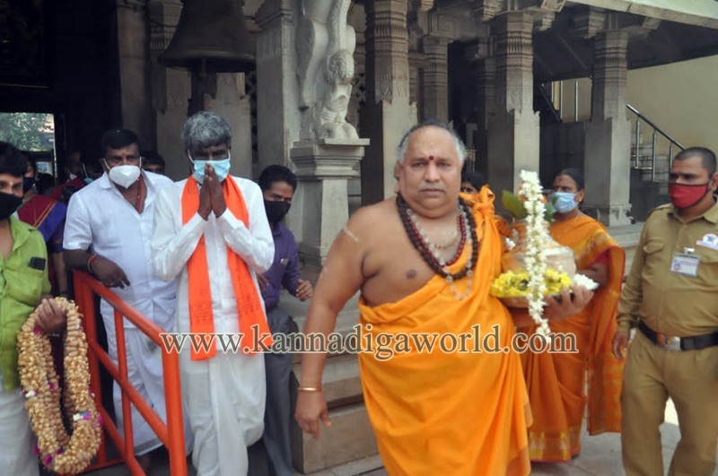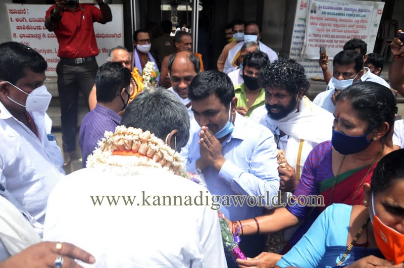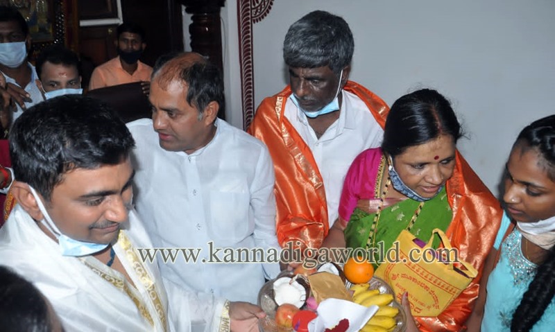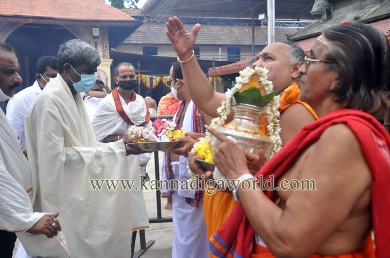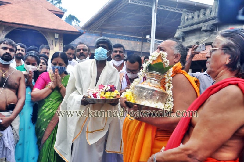 ಸಚಿವ ಕೊಟ ಶ್ರೀನಿವಾಸ ಪೂಜಾರಿಯವರನ್ನು ಪೂರ್ಣಕುಂಭ ಸ್ವಾಗತ ನೀಡಿ ಬರಮಾಡಿಕೊಳ್ಳಲಾಯಿತು. ದೇವಸ್ಥಾನದ ವ್ಯವಸ್ಥಾಪನಾ ಸಮಿತಿ ಅಧ್ಯಕ್ಷ ಚಂದ್ರಶೇಖರ ಶೆಟ್ಟಿ ಕೆರಾಡಿ ಅವರು ಸಚಿವ ಕೋಟ ಹಾಗೂ ಅವರ ಪತ್ನಿ ಶಾಂತಾ ಶ್ರೀನಿವಾಸ ಪೂಜಾರಿ ಅವರನ್ನು ದೇಗುಲದ ವತಿಯಿಂದ ಗೌರವಿಸಿದರು. ಸಚಿವರ ಪುತ್ರಿ ಶ್ರುತಿ ಇದ್ದರು.