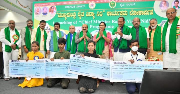 ರೈತ ವಿದ್ಯಾನಿಧಿ ಯೋಜನೆಯಡಿ ರೈತರ ಮಕ್ಕಳಿಗೆ ರಾಜ್ಯ ಸರ್ಕಾರ ಶಿಷ್ಯ ವೇತನ ನೀಡಲಿದ್ದು, ಸಾಂಕೇತಿಕವಾಗಿ ಕೆಲವು ರೈತರ ಮಕ್ಕಳಿಗೆ ಚೆಕ್ ವಿತರಣೆ ಮಾಡಲಾಗಿದೆ. ಯೋಜನೆಗೆ ಸಿಎಂ ಬಸವರಾಜ ಬೊಮ್ಮಾಯಿ ಚಾಲನೆ ನೀಡಿದ್ದಾರೆ. ಕೇಂದ್ರ ಕೃಷಿ ಹಾಗೂ ರೈತ ಕಲ್ಯಾಣ ಸಚಿವ ನರೇಂದ್ರ ಸಿಂಗ್ ತೋಮರ್ ವಿದ್ಯಾರ್ಥಿಗಳ ಖಾತೆಗೆ ವಿದ್ಯಾನಿಧಿ ಹಣವನ್ನು ಸಾಂಕೇತಿಕವಾಗಿ ವರ್ಗಾವಣೆ ಮಾಡಿದರು.