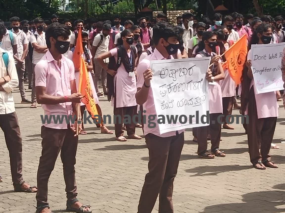ಎಬಿವಿಪಿ ರಾಜ್ಯ ಸಹ ಕಾರ್ಯದರ್ಶಿ ಮಣಿಕಂಠ ಕಳಸ ಮಾತನಾಡಿ, ದೇಶದಲ್ಲಿ ನಡೆಯುತ್ತಿರುವ ವಿಲಕ್ಷಣ ಘಟನೆಗಳು ತಲ್ಲಣ ಮೂಡಿಸುತ್ತಿದೆ. ಹೆಣ್ಣನ್ನು ಪೂಜಿಸಿ, ಗೌರವಿಸಬೇಕು ಎಂಬುದು ಭಾರತ ದೇಶದ ಪರಂಪರೆಯಾಗಿದೆ. ಆದರೆ ಇಂದು ವಾಸ್ತವ ಬದಲಾಗಿದ್ದು ಅಂತಹ ದುಷ್ಕೃತ್ಯಗಳು ನಿಲ್ಲಬೇಕು. ಗಾಂಧೀಜಿ ಕಂಡ ರಾಮರಾಜ್ಯದ ಕನಸು ಸಾಕಾರವಾಗಬೇಕು. ಅತ್ಯಾಚಾರ ಪ್ರಕರಣದ ಆರೋಪಿಗಳಿಗೆ ಕಠಿಣ ಶಿಕ್ಷೆಯಾಗುವ ಕಾನೂನು ಜಾರಿಯಾಗಬೇಕು ಎಂದು ಅವರು ಆಗ್ರಹಿಸಿದರು.