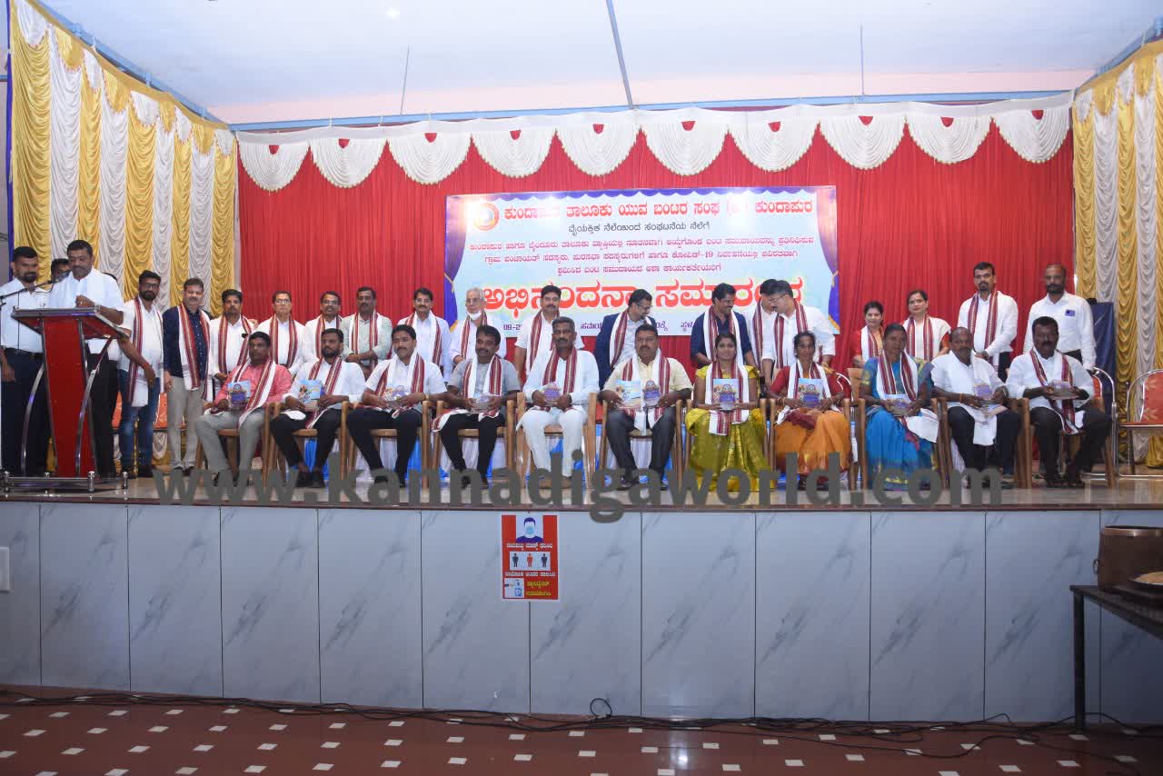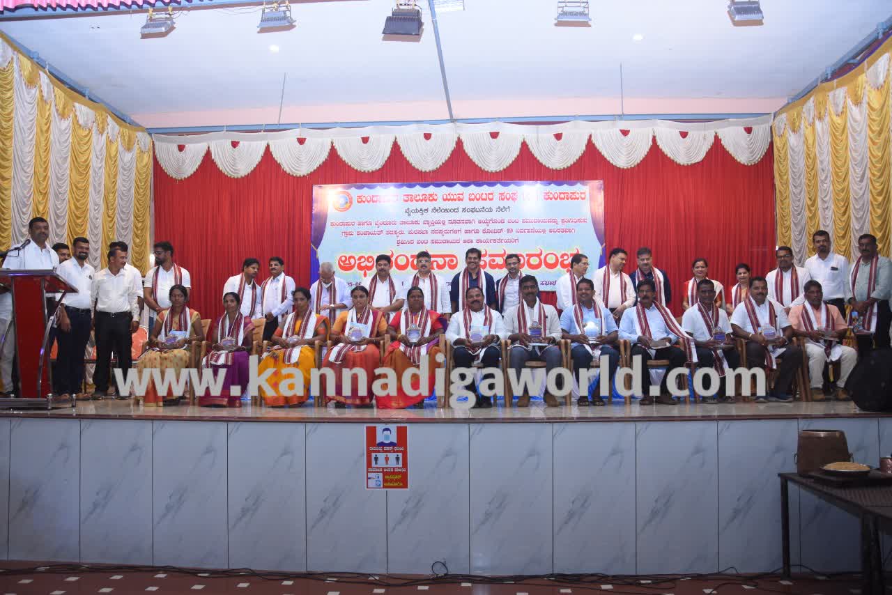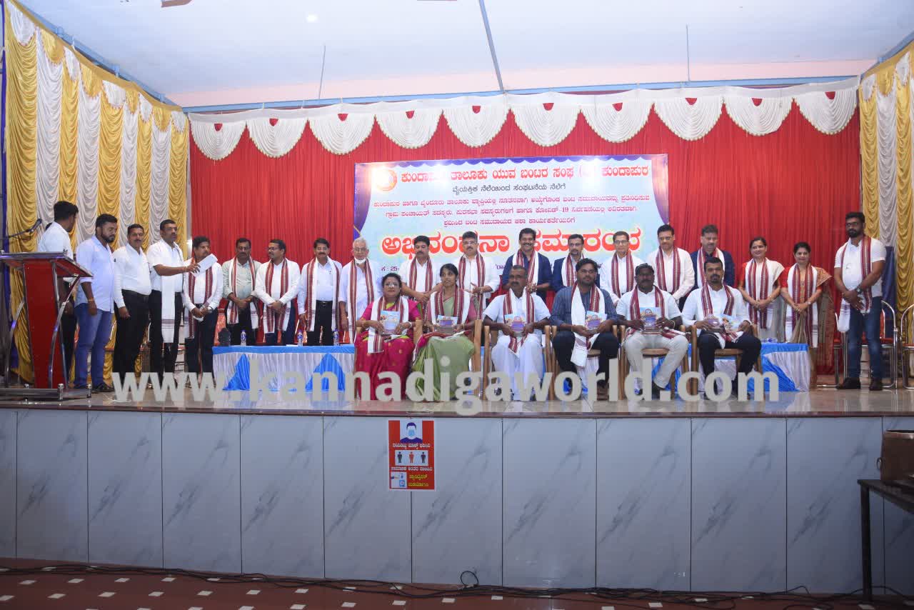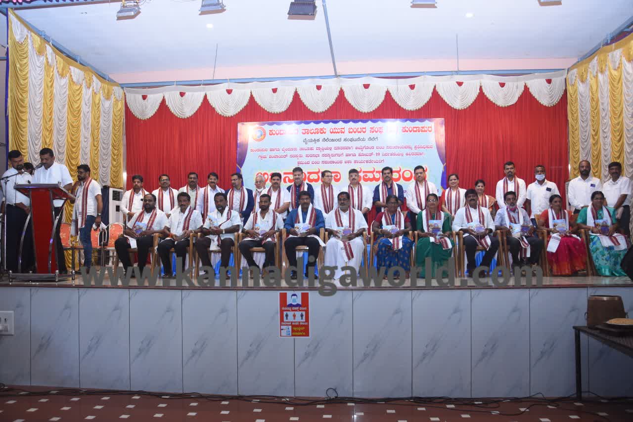 ಕುಂದಾಪುರ: ಯುವ ಬಂಟರ ಸಂಘ ಕುಂದಾಪುರ ತಾಲೂಕು ವತಿಯಿಂದ ಕುಂದಾಪುರ ಹಾಗೂ ಬೈಂದೂರು ತಾಲೂಕು ವ್ಯಾಪ್ತಿಯಲ್ಲಿ ನೂತನವಾಗಿ ಆಯ್ಕೆಯಾದ ಬಂಟ ಸಮುದಾಯದ ಗ್ರಾ.ಪಂ. ಸದಸ್ಯರು, ಪುರಸಭೆ ಸದಸ್ಯರು ಹಾಗೂ ಕೋವಿಡ್ ನಿರ್ವಹಣೆಯಲ್ಲಿ ನಿರಂತರವಾಗಿ ಶ್ರಮಿಸಿದ ಆಶಾ ಕಾರ್ಯಕರ್ತೆಯರಿಗೆ ಅಭಿನಂದನಾ ಸಮಾರಂಭ ಶನಿವಾರ ಇಲ್ಲಿನ ಆರ್.ಎನ್. ಶೆಟ್ಟಿ ಸಭಾಭವನದಲ್ಲಿ ನಡೆಯಿತು.