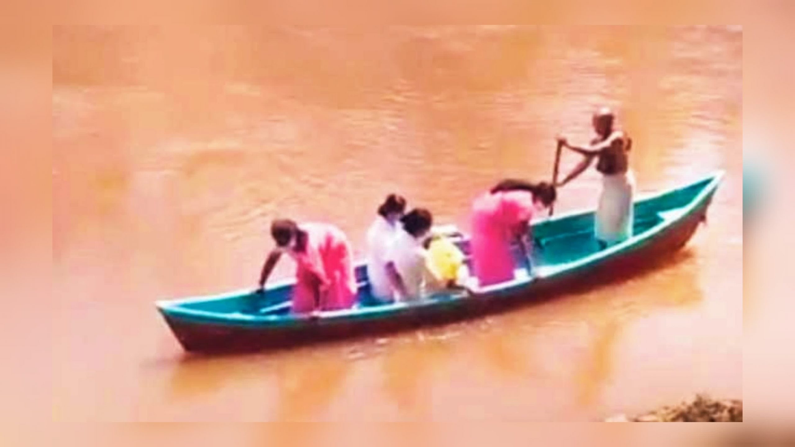 ಬೈಂದೂರು ತಾಲೂಕು ಮರವಂತೆ ಪ್ರಾಥಮಿಕ ಆರೋಗ್ಯ ಕೇಂದ್ರದ ಇಬ್ಬರು ನರ್ಸ್ಗಳು ಹಾಗೂ ಇಬ್ಬರು ಆಶಾ ಕಾರ್ಯಕರ್ತೆಯರು ನಾವುಂದ ಗ್ರಾಮದಲ್ಲಿರುವ ಕುದ್ರುವಿಗೆ ದೋಣಿ ಮೂಲಕ ನದಿ ದಾಟಿ ಮನೆಗಳಿಗೆ ತೆರಳಿ ಲಸಿಕೆ ನೀಡಿದ್ದಾರೆ.